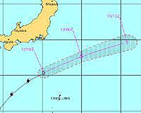 Tokyo (AFP) May 13, 2008 A strong typhoon was churning in the Pacific Ocean towards Japan on Tuesday, whipping up high waves and packing powerful winds in the Tokyo area, the weather agency said. Typhoon Rammasun, which means "god of thunder" in Thai, was causing winds of up to 111 kilometres (69 miles) per hour in the ocean off Tokyo Bay, the Japan Meteorological Agency said. But the season's second typhoon was moving northeast at 35 kilometres an hour and as expected to dissipate in the Pacific Ocean without making landfall. The typhoon comes 10 days after a devastating cyclone hit Myanmar, which says 62,000 people are dead or missing. Community Email This Article Comment On This Article Related Links Bringing Order To A World Of Disasters When the Earth Quakes A world of storm and tempest