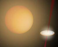 Vancouver, Canada (SPX) Dec 05, 2007 University of British Columbia astronomer Harvey Richer and UBC graduate student Saul Davis have discovered that white dwarf stars are born with a natal kick, explaining why these smoldering embers of Sun-like stars are found on the edge rather than at the centre of globular star clusters. White dwarfs represent the third major stage of a star's evolution. Like the Sun, each star begins its life with a long stable state where nuclear reactions take place in the core supplying the energy. After the core fuel is depleted, it swells up and turns into a huge red giant. Later, the red giant ejects its outer atmosphere and its core becomes a white dwarf that slowly cools over time and radiates its stored thermal heat into space. Using NASA's Hubble telescope, Richer and his team looked at the position of white dwarfs in NGC 6397, one of the globular star clusters closest to Earth. Globular clusters are dense swarms of hundreds of thousands of stars. About 150 of these clusters exist in the Milky Way, each containing between 100,000 and one million stars. "The distribution of young white dwarfs is the exact opposite of what we expected," says Prof. Richer, whose study will appear in the Monthly Notices of the Royal Astronomical Society Letters in January 2008. Richer explains that globular clusters sort out stars according to their mass, governed by a gravitational billiard-ball game among stars. Heavier stars slow down and sink to the cluster's core, while lighter stars pick up speed and move across the cluster to its outskirts. The team found that the older white dwarfs were behaving as expected; they were scattered throughout the cluster according to weight. "Newly-minted white dwarfs should be near the center, but they are not," says Richer. "Our idea is that when these white dwarfs were born, they were given a small kick of 7,000 to 11,000 miles an hour (three to five kilometers a second), which rocketed them to the outer reaches of the cluster." Using computer simulations, Richer and his team showed that when white dwarfs were born, their own mass acts like "rocket fuel" propelling them forward. "If more of this mass is ejected in one direction, it could propel the emerging white dwarf through space, just as exhaust from a rocket engine thrusts it from the launch pad," says Richer. The researchers studied 22 young white dwarfs up to about 800 million years old and 62 older white dwarfs between 1.4 and 3.5 billion years old. They distinguished the younger from the older white dwarfs based on their color and brightness. The younger ones are hotter, and therefore bluer and brighter than the older ones. Community Email This Article Comment On This Article Related Links University of British Columbia Stellar Chemistry, The Universe And All Within It