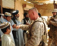 Out shopping with the US Marine commander in AfghanistanGarmsir, Afghanistan (AFP) July 4, 2009 Brigadier General Larry Nicholson demonstrated the more open approach he wants to see among the new US troops sent to southern Afghanistan by going shopping for melons. Nicholson, commander of the 4,000 Marines deployed on Thursday in the mainly Taliban-held Helmand River valley, headed to Garmsir district centre to visit a bazaar selling fruit, vegetables and meat. The day after ... read more |