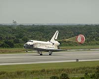 Cape Canaveral, Florida (AFP) Feb 20, 2008 The shuttle Atlantis safely landed in Florida Wednesday, completing a successful mission to install Europe's first space laboratory. Atlantis touched down at the seaside Kennedy Space Center in Cape Canaveral, bringing home seven astronauts following a 13-day mission to deliver the Columbus lab to the orbiting International Space Station. The shuttle's return also cleared the skies for US military plans to shoot down an out-of-control spy satellite before it crashes on Earth. "We are extremely happy to be home," Atlantis commander Steve Frick commander told mission control. Before returning to Florida, co-pilot Alan Poindexter fired up two small engines for two minutes and 44 seconds to slow the shuttle to some 250 kilometers per hour from some 27,000 kph, or 25 times the speed of sound. Atlantis then began an hour-long descent toward Florida, over the Gulf of Mexico and past western Cuba before landing under clear blue skies. "Atlantis rolling out on runway 15 wrapping up a 5.3 million mile mission to expand the global village of space," said NASA television commentator Rob Navias. The US military waited for the shuttle to land to safely destroy the satellite over the Pacific ocean, a shoot-down estimated to cost between 40 million and 60 million dollars. Armed with two specially modified interceptor missiles, the USS Lake Erie cruiser has been tasked to intercept the satellite over the Pacific and shoot it down into the ocean, officials said. The USS Decatur, a guided missile destroyer, is carrying a third interceptor missile in case the first two attempts fail, defense officials said. Bad weather may delay the shoot-down, officials said. "There is a very low risk because our orbits are quite different," Atlantis Commander Frick said. NASA flight director Brian Lunney had said Tuesday, however, that there was no pressure to land the shuttle in a hurry. "I'm not going to land the vehicle until it's safe to do so," he said. The astronauts also checked the shuttle's heat shield before returning to Earth, an inspection that has been conducted on every mission since a crack on the shuttle Columbus' thermal tiles caused it to disintegrate on re-entry in 2003, killing all seven astronauts aboard. Atlantis brought home American astronaut Daniel Tani, who had spent 120 days in space. He was replaced on the station by French astronaut Leopold Eyharts. The Atlantis mission gave Europe a major foothold in its space exploration ambitions with the addition of Columbus to the ISS. The two-billion-dollar lab has room for three astronauts. Japan will be the next major contributor to the ISS when shuttle Endeavour lifts off on March 11 to deliver the the first section of the three-part Kibo laboratory. NASA wants to conduct 10 more shuttle missions to complete the ISS by 2010, when it plans to retires its three-shuttle fleet. The US space agency is already working on replacing the shuttle with a new-generation spacecraft with an eye to returning to the moon by 2020 and eventually taking humans to Mars. Community Email This Article Comment On This Article Related Links Shuttle at NASA Watch NASA TV via Space.TV Space Shuttle News at Space-Travel.Com