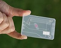 Seattle WA (SPX) Jan 26, 2009 Researchers at the University of Washington have developed a prototype malaria test printed on a disposable Mylar card that could easily slip into your wallet and still work when you took it out, even months later. Paul Yager, UW bioengineering professor, and colleagues described the prototype cards in the December issue of the journal Lab on a Chip. These cards are a critical step in a long-term project funded by The Bill and Melinda Gates Foundation's Grand Challenges in Global Health Initiative to develop affordable, easy-to-use diagnostic tools for the developing world. "A pivotal issue in having this technology work is making these tests storable for long periods of time at ambient temperatures," Yager said. "Normally people work with wet reagents. We're saying we can dry the reagents down in order to store them without refrigeration. It's the astronaut-food approach." The malaria cards contain reagents that would normally require refrigeration, but the researchers figured out a way to stabilize them in dry form by mixing them with sugar. Results showed that malaria antibodies dried in sugar matrices retained 80 percent to 96 percent of their activity after 60 days of storage at elevated temperatures. The goal of the long-term project is to develop a system with which a clinician can spot a drop of a patient's blood onto a card and feed it into an instrument that gives a yes/no answer for a panel of infectious diseases in 20 minutes or less. Tests with the prototype malaria card reached a result in less than nine minutes using an immunoassay, or antibody-based, approach. Developing countries, which are most in need of such technology, face unique challenges when it comes to medical care. "Something as seemingly simple as a blood test for a common disease gets more complicated when money and resources are lacking," said Dean Stevens, UW bioengineering doctoral student and first author on the study. Clinicians trying to diagnose patients in rural, poor communities in the developing world face hurdles such as unsanitary conditions, lack of refrigeration for the many common lab tests using ingredients that must be kept cold, unreliable power and general lack of resources, Stevens said. In the developing world, healthcare budgets can be as low as $10 per person per year, compared to an average of $4,000 in the U.S. Tests for diseases also need to be fast and easy to use, because health-care workers might only have one visit to diagnose and treat a patient, and thus can't wait days for lab results. While treatments in poor, rural communities come with their own difficulties, diagnosis is the key to getting good medical care, Stevens said. "Your treatment is really only as good as your diagnosis," he said. The malaria-test card is being developed as part of an automated diagnostic system informally called the DxBox, the Dx being medical shorthand for diagnosis. The DxBox team is led by Yager and includes UW bioengineering professor Patrick Stayton; collaborators at PATH, a Seattle-based nonprofit focused on global health; Micronics Inc. of Redmond, Wash.; and Nanogen Inc. of San Diego. The DxBox consists of a portable, fully automatic reader being developed by Micronics that will process the card-based disposable tests. The UW prototype cards look for the presence of malarial proteins, but the team is also working on other kinds of protein tests as well as a second kind of test for each disease that looks for the pathogen's DNA or RNA. The UW's malaria cards use features of common lab tests and take into account portability, automation and easy storage. The cards rely on microfluidics, the manipulation of liquids at very small scales. Thin channels crisscross the Mylar sheets, and syringes are used to pump different liquids for the tests through the channels. "It's like plumbing, only the pipes are less than a millimeter wide," Yager said. Microfluidics not only save space and resources, but working with liquids on such a small scale allows the researchers to do more. "It's not just about making big things small," Yager said. "It's also about doing things that are only possible at that very small scale." The diagnostic tests in the DxBox system run much faster than conventional tests in part because the liquids involved behave differently, a key factor for clinicians who have limited time to spend with their patients. Currently, the researchers look for colored spots on the card that indicate the presence of malaria proteins. The hue of the color indicates the intensity of the disease. The DxBox can read these small spots automatically, reducing the chance for human error. While the prototype developed by the UW researchers only tests for malaria, Yager and his collaborators are working towards cards that also will test for five other diseases that, like malaria, cause high-fever symptoms: dengue, influenza, Rickettsial diseases, typhoid and measles. The "fever panel" of six diseases is merely a starting point, Yager said. The UW technology could be adapted to include other diseases in the future. Other authors on the paper are Camille Petri, undergraduate at Boston College in Chestnut Hill, Mass.; Jennifer Osborn, UW bioengineering doctoral student; Paolo Spicar-Mihalic, UW chemistry doctoral student; and Katherine McKenzie, UW bioengineering doctoral student. Share This Article With Planet Earth
