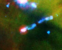Pasadena CA (SPX) Sep 22, 2008 Water is being blasted to pieces by a young star's laser-like jets, according to new observations from NASA's Spitzer Space Telescope. The discovery provides a better understanding of how water -- an essential ingredient for life as we know it -- is processed in emerging solar systems. "This is a truly unique observation that will provide important information about the chemistry occurring in planet-forming regions, and may give us insights into the chemical reactions that made water and even life possible in our own solar system," said Achim Tappe, of the Harvard-Smithsonian Center for Astrophysics, Cambridge, Mass. A young star forms out of a thick, rotating cloud of gas and dust. Like the two ends of a spinning top, powerful jets of gas emerge from the top and bottom of the dusty cloud. As the cloud shrinks more and more under its own gravity, its star eventually ignites and the remaining dust and gas flatten into a pancake-like disk, from which planets will later form. By the time the star ignites and stops accumulating material from its cloud, the jets will have died out. Tappe and his colleagues used Spitzer's infrared eyes to cut through the dust surrounding a nascent star, called HH 211-mm, and get a better look at its jets. These particular jets are exceptionally young at 1,000 years old, and they are some of the most collimated, or focused, known. An instrument on Spitzer called a spectrometer analyzed light from one of the jets, revealing information about its molecules. To the astronomers' surprise, Spitzer picked up the signature of rapidly spinning fragments of water molecules, called hydroxyl, or OH. In fact, the hydroxyl molecules have absorbed so much energy (through a process called excitation) that they are rotating around with energies equivalent to 28,000 Kelvin (27,700 degrees Celsius). This far exceeds normal expectations for gas streaming out of a stellar jet. Water, which is abbreviated H2O, is made up of two oxygen atoms and one hydrogen; hydroxyl, or OH, contains one oxygen and one hydrogen atom. The results reveal that the jet is ramming its head into a wall of material, vaporizing ice right off the dust grains it normally coats. The jet is hitting the material so fast and hard that a shock wave is also being produced. "The shock from colliding atoms and molecules generates ultraviolet radiation, which will break up water molecules, leaving extremely hot hydroxyl molecules," said Tappe. Tappe said this same process of ice being vaporized off dust occurs in our own solar system, when the sun vaporizes ice in approaching comets. In addition, the water that now coats our world is thought to have come from icy comets that vaporized as they rained down on a young Earth. Tappe is the lead author of a paper on this topic, which was published in a recent issue of the Astrophysical Journal. Co-authors on the paper include Charlie Lada, and August Muench, also of the Harvard-Smithsonian Center for Astrophysics; and J. H. Black, of the Chalmers University of Technology, in Onsala, Sweden. Community Email This Article Comment On This Article Related Links NASA Spitzer Space Telescope Stellar Chemistry, The Universe And All Within It