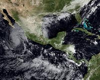Tourists flee Hurricane Jimena in MexicoPuerto San Carlos, Mexico (AFP) Sept 1, 2009 Hurricane Jimena sent tourists fleeing Tuesday as it bore down on Mexico's Baja California, while fishing communities on the sparsely populated peninsula toughed it out. The peninsula, which spears down from California into northwestern Mexico, lay directly in the path of 2009's mightiest hurricane, but few residents evacuated even as tourists scattered from resorts on its southern tip. ... read more |