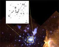 Montreal, Canada (SPX) Oct 02, 2008 Theoretical models of stellar formation propose the existence of very massive stars that can attain up to 150 times the mass of our Sun. Until very recently, however, no scientist had discovered a star of more than 83 solar masses. Now an international team of astrophysicists, led by Universite de Montreal researchers from the Centre de recherche en astrophysique du Quebec (CRAQ), has found and "weighed" the most massive star to date. Olivier Schnurr, Jules Casoli and Andre-Nicolas Chene, all graduates of the Universite de Montreal, and professors Anthony F. J. Moffat and Nicole St-Louis, successfully "weighed" a star of a binary system with a mass 116 times greater than that of the Sun, waltzing with a companion of 89 solar masses, doubly beating the previous record and breaking the symbolic barrier of 100 solar masses for the first time. Located in the massive star cluster NGC 3603, the supermassive star system, known under the name of A1, has a rotation period of 3.77 days. The masses were calculated by a combination of observations made with the SINFONI instrument, an integral field spectrograph operating on the Very Large Telescope on the site of the European Organisation for Astronomical Research in the Southern Hemisphere (ESO) in Chile, and infrared images coming from the Hubble Space Telescope. The stars forming the A1 system are so massive and bright that the light they transmit shows characteristics that only "Wolf-Rayet" stars possess. Within the context of this work, a binary system transmitting X-rays at a power almost never seen in our Galaxy was also discovered near NGC 3603-A1. Community Email This Article Comment On This Article Related Links CRAQ Stellar Chemistry, The Universe And All Within It