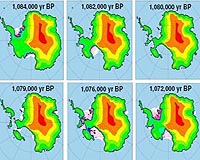 University Park PA (SPX) Mar 26, 2009 Researchers today worry about the collapse of West Antarctic ice shelves and loss of the West Antarctic ice sheet, but little is known about the past movements of this ice. Now climatologists from Penn State and the University of Massachusetts have modeled the past 5 million years of the West Antarctic ice sheet and found the ice expanse changes rapidly and is most influenced by ocean temperatures near the continent. "We found that the West Antarctic ice sheet varied a lot, collapsed and regrew multiple times over that period," said David Pollard, senior scientist, Penn State's College of Earth and Mineral Sciences' Earth and Environmental Systems Institute. "The ice sheets in our model changed in ways that agree well with the data collected by the ANDRILL project." Pollard and Robert M. DeConto, professor of climatology, U. Mass, reported their findings in Nature. The results of the first ANDRILL drill core near McMurdo Station, Antarctica, are reported in a companion paper in the same issue. The ANtarctic geological DRILLing project is a multinational collaboration to drill back in time into sediment to recover a history of paleoenvironmental changes. "We found, as expected, that the East Antarctic ice sheet is stable and did not change," said Pollard. The East Antarctic ice sheet does not slide into the sea and melt away because most of the bedrock below East Antarctic ice is above sea level. However, on the other side of the continent, to the Pacific side of the Transantarctic Mountain Range, much of the bedrock below the ice lies from several hundred to several thousand feet below sea level, leaving the West Antarctic ice vulnerable to melting. "We found that the ocean's warming and melting the bottom of the floating ice shelves has been the dominant control on West Antarctic ice variations," said Pollard. When the floating ice shelves melt sufficiently, they no longer buttress the grounded ice upstream, which then flows faster and rapidly drains the massive interior ice. The grounding line, the junction between the floating ice shelf and upstream ice resting on bedrock, retreats converting more grounded ice to floating ice shelves. Eventually, nearly all of the ice sheet on the Pacific side of Antarctica can disappear as it has in the past. The researchers' computer model needs past variations of snowfall, snow melt and ocean melting below the floating ice to be specified. These are not obtained from the General Circulation Models often used in climate reconstruction because running those models to create 5 million years of climate history would take years. Instead, the researchers related past variations of these quantities to records of deep sea oxygen isotope ratios that indicate temperature changes in the oceans. "We assume this is all driven by global-scale climate variations including Northern Hemispheric glacial cycles, so we used the changes in the oxygen 18 record to deduce the Antarctic changes," says Pollard. "Our next step will be to test whether this record really represents sea temperatures around Antarctica." The researchers compared their model's output with the sediment core record from ANDRILL. In these cores, coarse pebbly glacial till represent the glacial periods, while intervals filled with the shells of tiny ocean-living diatoms represent the nonglacial periods. One way the ANDRILL researchers date the layers is using existing datable volcanic layers within the core. Pollard and DeConto not only looked at the modeling of the overall West Antarctic ice sheet, they also looked at the nearest grid point in their model to the ANDRILL drilling location. They found that, for the most part, the data trend at that grid point matched the data obtained from the sediment core. "Our modeling extends the reach of the drilling data to justify that the data represent the entire West Antarctic area and not just the spot where they drilled," said Pollard. Along with the rapid appearance and disappearance of the ice, the researchers noted that both in the ANDRILL record and the model results, during the early portion of the 5 million years, the periodicity of the glaciation and melting was about 40,000 years which matches the Northern Hemisphere's pattern of glaciation and glacier retreat. The basic driver is very likely the tilt of the Earth's axis which varies with the same period, according to Pollard. However, nearer to the present, the cycle time increased to about 100,000 years as expected, driven by Northern Hemispheric ice age cycles. During past warm periods, the major collapses in the model take a few thousand years. This is also the expected time scale of future collapse of the West Antarctic ice sheet if ocean temperatures warm sufficiently - longer than a few centuries but shorter than ten thousand years. The researchers note that when atmospheric carbon dioxide levels in the past were about 400 parts per million, in the early part of the ANDRILL record, West Antarctic ice sheet collapses were much more frequent.. "We are a little below 400 parts per million now and heading higher," says Pollard. "One of the next steps is to determine if human activity will make it warm enough to start the collapse." Share This Article With Planet Earth