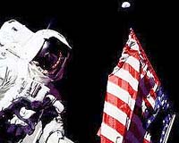 The sky was equally baffling. Although the Eagle had landed on a bright lunar morning, the sky was as black as midnight. An astronomer's paradise? No. Not a single star was visible. The glaring, sunlit ground ruined the astronaut's night vision. Only Earth itself was bright enough to be seen, luminous blue and white, hanging overhead.