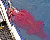 Wellington (AFP) April 30, 2008 The largest squid ever caught began to reveal its secrets Wednesday, including beach ball-sized eyes that scientists said were the biggest known in the animal kingdom. The 495-kilogram (1,090-pound) colossal squid -- accidentally caught by a fishing boat in Antarctic waters in February 2007 -- is slowly thawing under the fascinated gaze of a team of scientists at the Museum of New Zealand. While defrosting took longer than expected Wednesday, one of the earliest revelations were eyes measuring 27 centimetres (11 inches) across with lenses of 10 to 12 centimetres in diameter. In comparison, a human eye measures around one inch, less than a tenth the size. "We saw two of the most sensational eyes possible," Auckland University of Technology marine biologist Steve O'Shea told journalists. Professor Eric Warrant of the University of Lund in Sweden, said the eyes had shrunk after the squid was frozen. The live animal would have had eyes measuring about 40 centimetres across, "about the size of a beach ball." These would help the squid to locate prey in the dark of its habitat 1,000 metres (3,300 feet) or more below the surface of Antarctic waters, he said. Auckland University of Technology scientist Kat Bolstad told reporters the eyes were "the biggest eyes ever recorded in the animal kingdom." The scientists were surprised to find the squid was shorter than they had expected at 4.2 metres when it thawed enough to be laid out. Museum project manager Chris Paulin said the length of mantle, or trunk of the body, was comparable to a specimen found in 2003. But the latest squid is 195 kilograms heavier, he said in a blog on the museum's website following the examination. "The two long tentacles that the fishermen observed have shortened and shrunken considerably post mortem, giving a final total length of 4.2 metres," he said. Those tentacles carry up to 25 rotating hooks each, while eight arms each contain up to 19 fixed hooks used to capture prey and bring it to the squid's beaked mouth. O'Shea and his colleagues believe larger squid still lurk in the southern ocean depths. The squid's lower beak measures around 40 centimetres across, while other beaks have been found -- usually in the stomach of predator sperm whales -- measuring up to 49 centimetres. O'Shea said it is possible that colossal squid (Mesonychoteuthis hamiltoni) may grow to up to 750 kilograms but there was not yet enough information to be sure. "When I said in 2003 that colossal squid could grow to 500 kilograms no one believed me, I was ridiculed, people laughed at me," he said. The scientists are now trying to probe the squid to find out what its last meal was, according to the website. The progress of the examination is being shown by webcams on the museum's website www.tepapa.govt.nz Community Email This Article Comment On This Article Related Links Darwin Today At TerraDaily.com